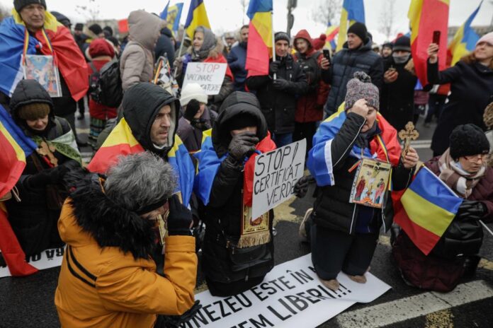 O lume pestriță s-a adunat, marți dimineață, în fața Palatului Parlamentului blocând complet circulația rutieră în zonă. Este vorba despre oameni scoși din case de liderii AUR și puși să protesteze împotriva certificatului verde, dar și a formularului digital de intrare în țară